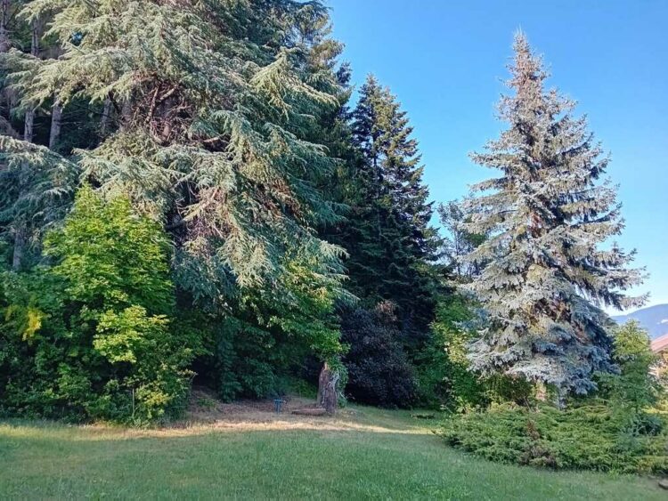 Completa la proprietà un giardino curato interamente recintato di circa 1500 mq e un box auto doppio collegato direttamente alla casa.